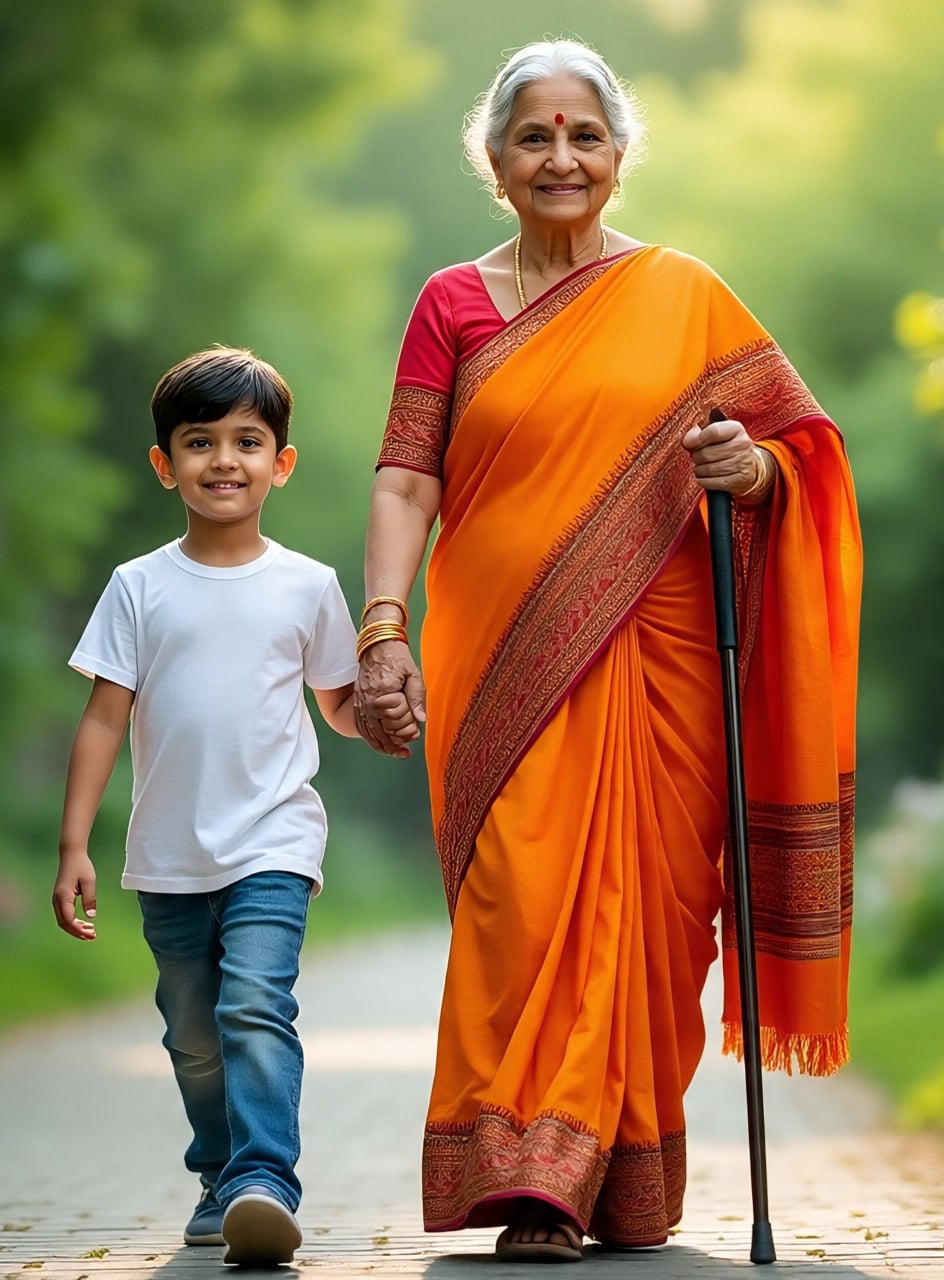 Integrating advanced assistive technology with timeless family values, inspired by the Sanskrit word Naptr meaning grandchild, symbolizing the bridge between innovation and care for our elders.”